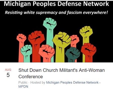 MPDN calls The Church Militant “a radical religious hate group working to suppress women’s rights and promote a theocratic Christian agenda.” It would be more accurate to describe MPDN as a radical anti-religious hate group promoting an anarchist anti-Christian agenda. And the possibility of “antifa” violence cannot be ignored: