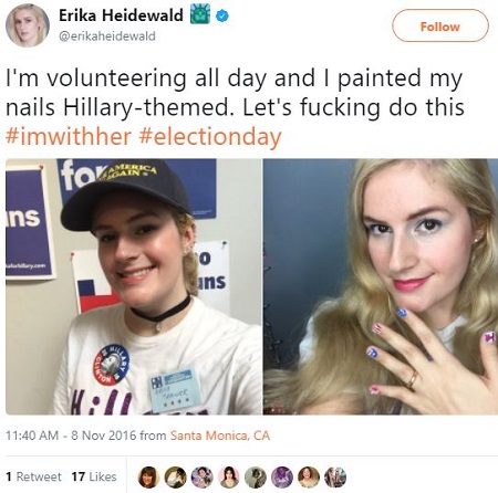 Erika Heidewald is a young Democrat and a fool, but I repeat myself. Perhaps some day she will grow up, get tired of hanging around with losers, and decide instead to help Make America Great Again.