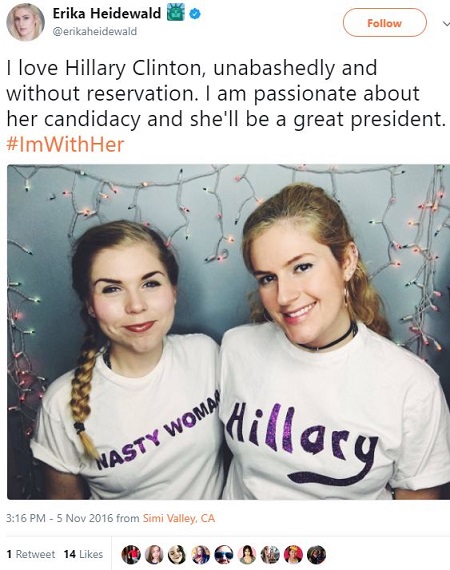 Erika Heidewald is a German-born lesbian feminist and Democrat Party activist who hates capitalism, Christianity and white males, not necessarily in that order. Before last year’s election, Ms. Heidewald was busy with her immigrant girlfriend Frida on YouTube promoting homosexuality and also, of course, campaigning for Hillary Clinton.